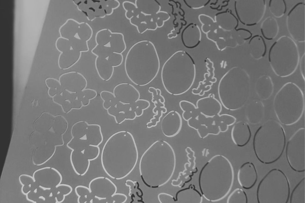 La collection est enfin définie, place à la production en petite série des bijoux. Les dessins sont envoyés à notre atelier de découpe et gravure laser. Nous recevons après plusieurs semaines de traitement nos planches avec chaque pièce découpée et gravée selon nos souhaits. Florence peut alors les détacher puis reprendre le processus : soudures, martelage, assemblage, polissage et dorure .