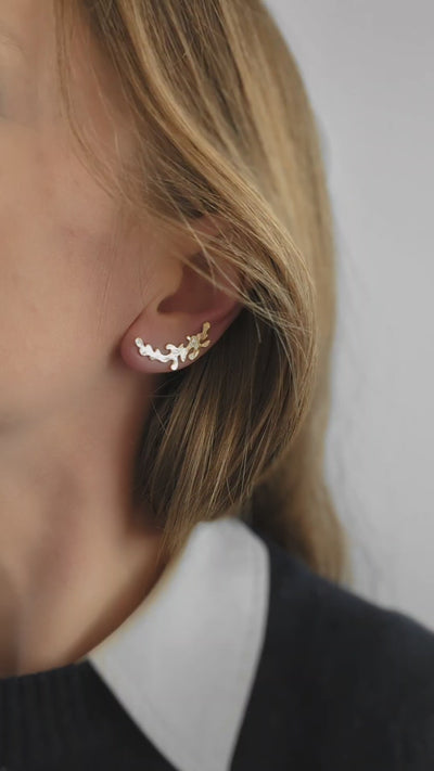 Boucles d'oreilles martelées "Climbers" (Grimpantes) inspirées par les formes des papiers découpés d'Henri Matisse. Ces boucles ne nécessitent qu'un seul trou et habillent l'intégralité du lobe.